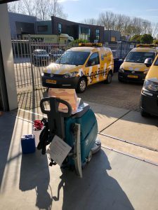 Bij ANWB Technisch Expertise Centrum in Ypenburg hebben we eveneens een Tennant T2 schrobmachine geleverd voor het reinigen van de werkplaatsvloer.