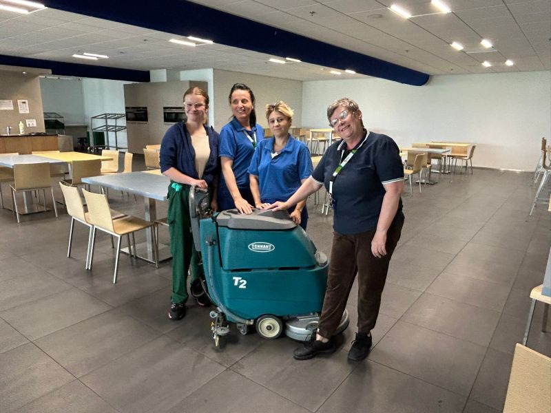 Het schoonmaakteam van Plukon Dronten reinigt de vloeren nu nog sneller en grondiger! Wij hebben namelijk onlangs een gereviseerde Tennant T2 schrobmachine mogen leveren!